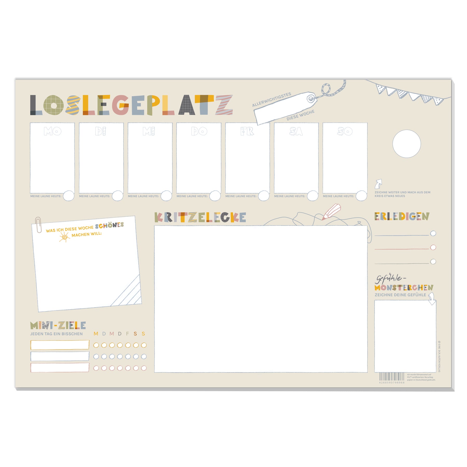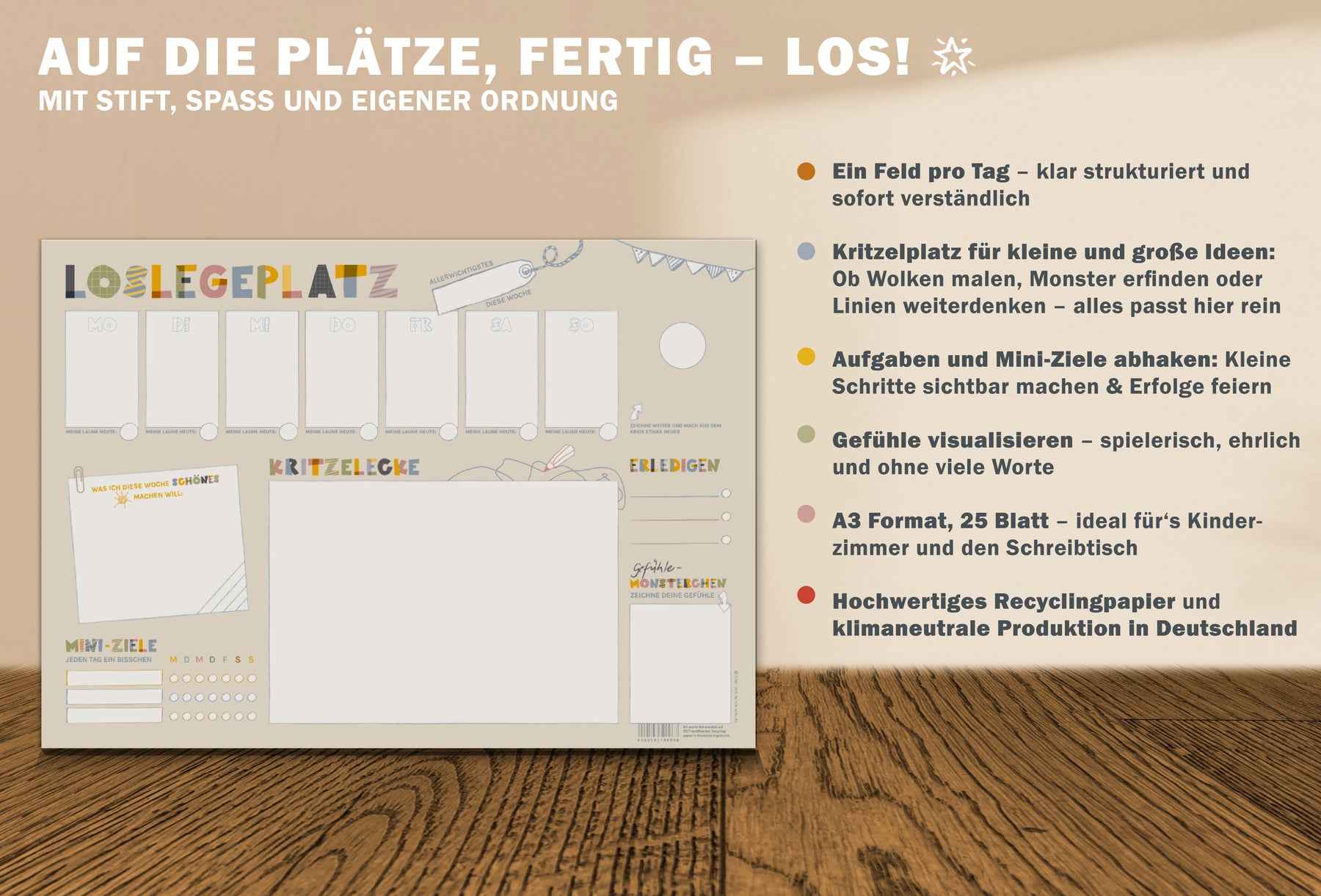 Nachhaltige Schreibtischunterlage für Kinder A3 kreativer Wochenplan – Loslegeplatz