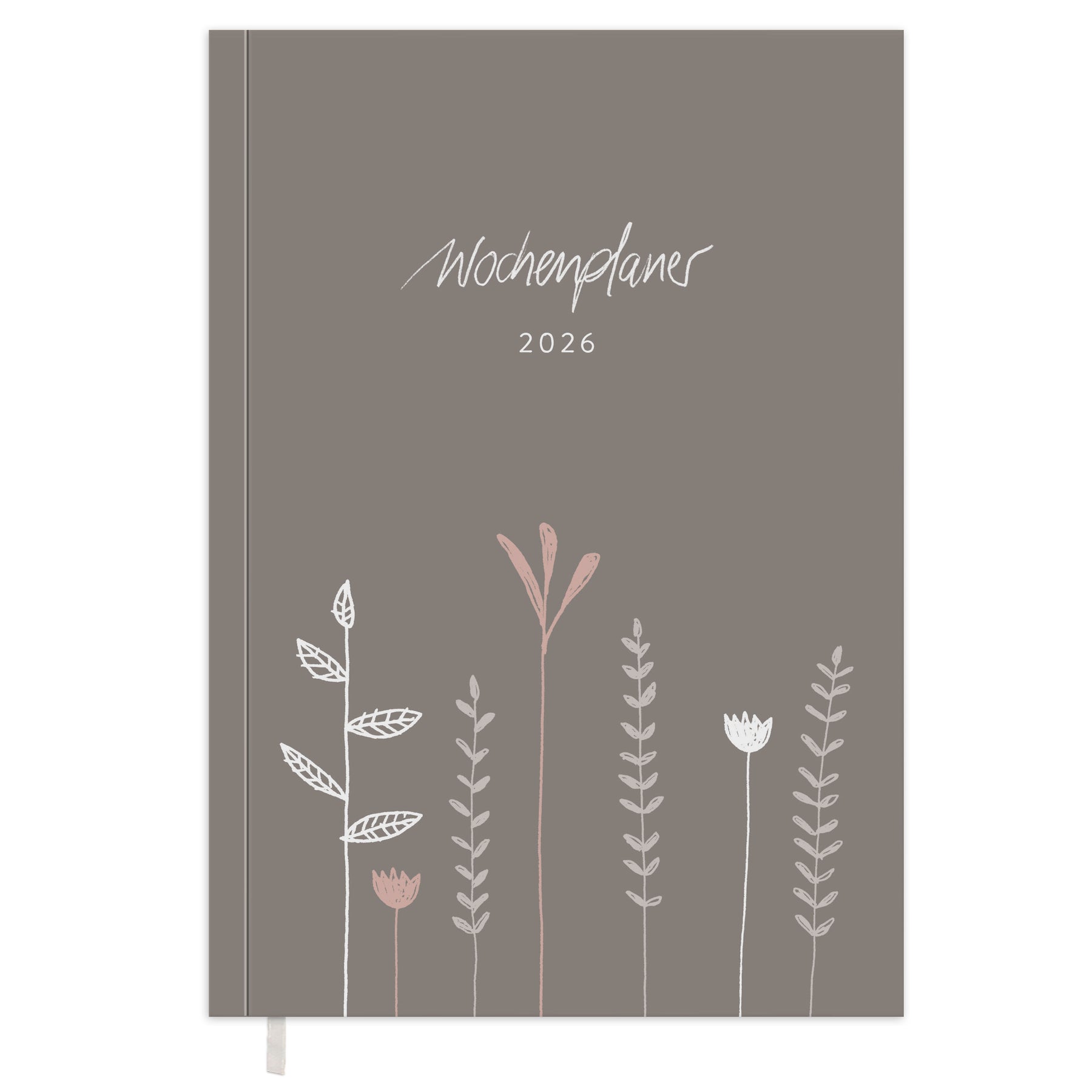 ÜBERSICHTLICH & KLAR: A5 Kalender 2026 mit Wochenübersicht im Zeilen-Layout, 2 Seiten pro Woche, flexibles Softcover mit eingeklebtem Lesebändchen als Schnellfinder, 152 Seiten, 120 g FSC Papier, CO2-neutral gedruckt, Weiß Beige Rosa.