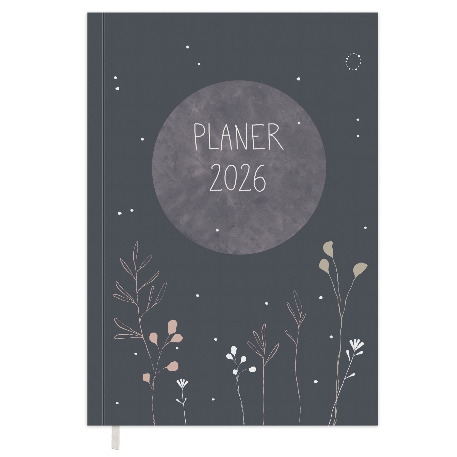 ÜBERSICHTLICH & KLAR: A5 Kalender 2026 mit Wochenübersicht im Spalten-Layout, 2 Seiten pro Woche, flexibles Softcover mit eingeklebtem Lesebändchen als Schnellfinder, 168 Seiten, 120 g FSC Papier, CO2-neutral gedruckt, Grau-Blau Beige Weiß Altrosa.