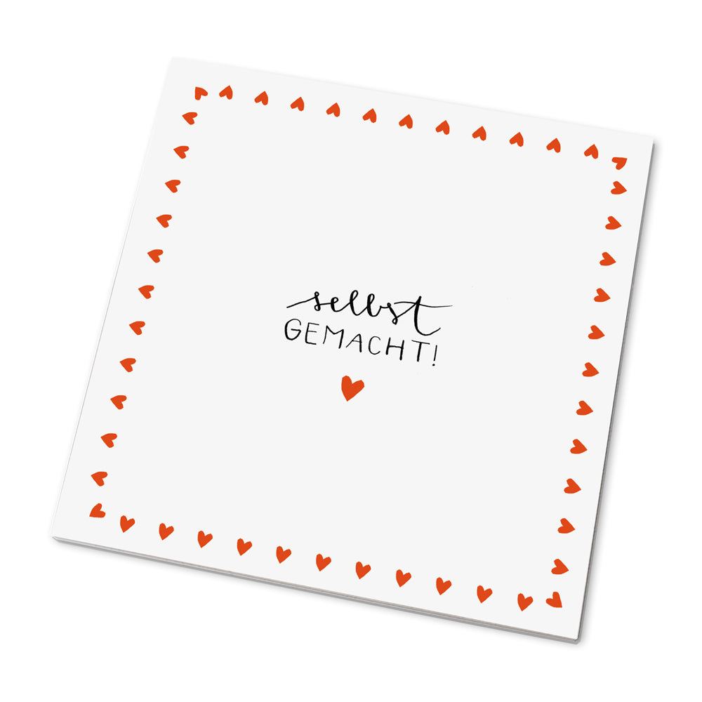 25 kleine Gläserdeckchen aus Papier für deine Marmelade, mit - selbst gemacht! - Schriftzug und Herzchen in Weiß Schwarz Rot, CO2 neutral gedruckt