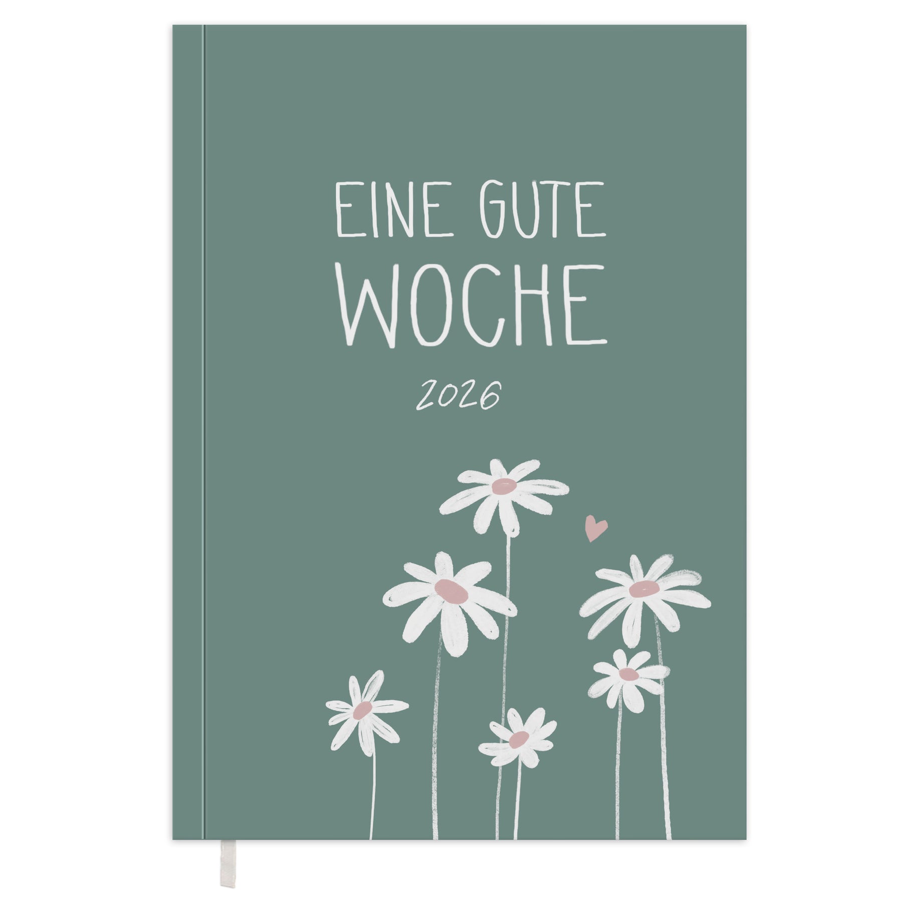 ÜBERSICHTLICH & KLAR: A5 Kalender 2026, 2 Seiten pro Woche, mit Wochenübersicht im Zeilen-Layout und Notizseite, flexibles Softcover mit eingeklebtem Lesebändchen als Schnellfinder, 144 Seiten, 120 g FSC Papier, CO2-neutral gedruckt, Salbei-Grün Weiß Rosa.