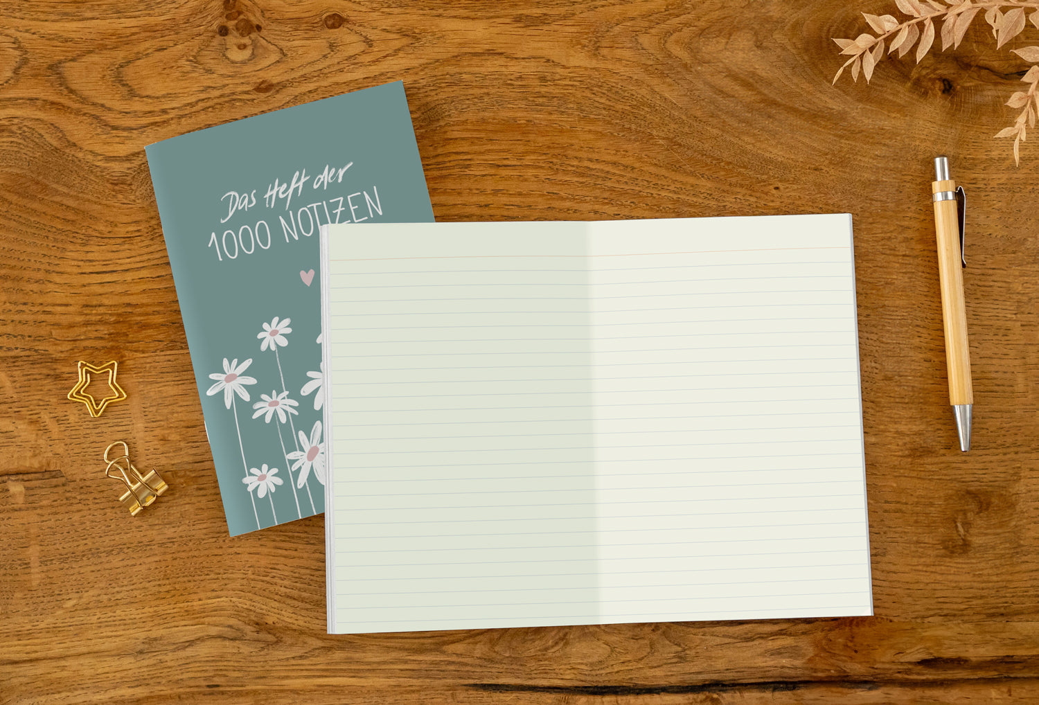 Notizheft A5 liniert – Das Heft der 1000 Notizen aus Recyclingpapier in Mintgrün